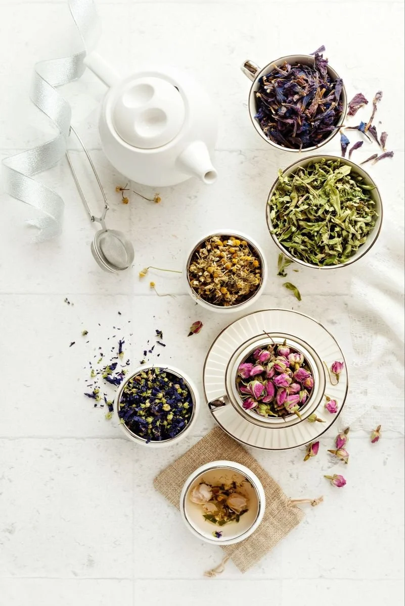 คุณสามารถเลือกชาชนิดเดียว เช่น “Chamomile for Sleep” หรือทำ Tea Blend ผสมดอกไม้หลายชนิด เช่น คาโมมายล์ + ตะไคร้ → เพื่อช่วยเรื่องการนอนหลับ